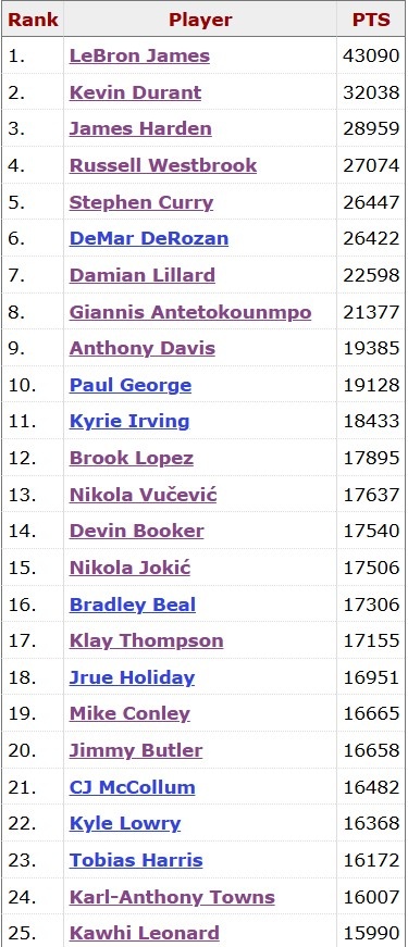 在本场比赛中,伦纳德常规赛生涯总得分突破16000大关,现役第25人。