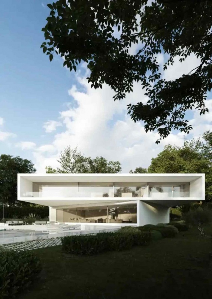 房屋采用现代极简风格,设计上融合了叠层结构、转角造型与多层错落布局,配有大面积落地窗,可直接眺望拉莫拉莱哈皇家高尔夫俱乐部。