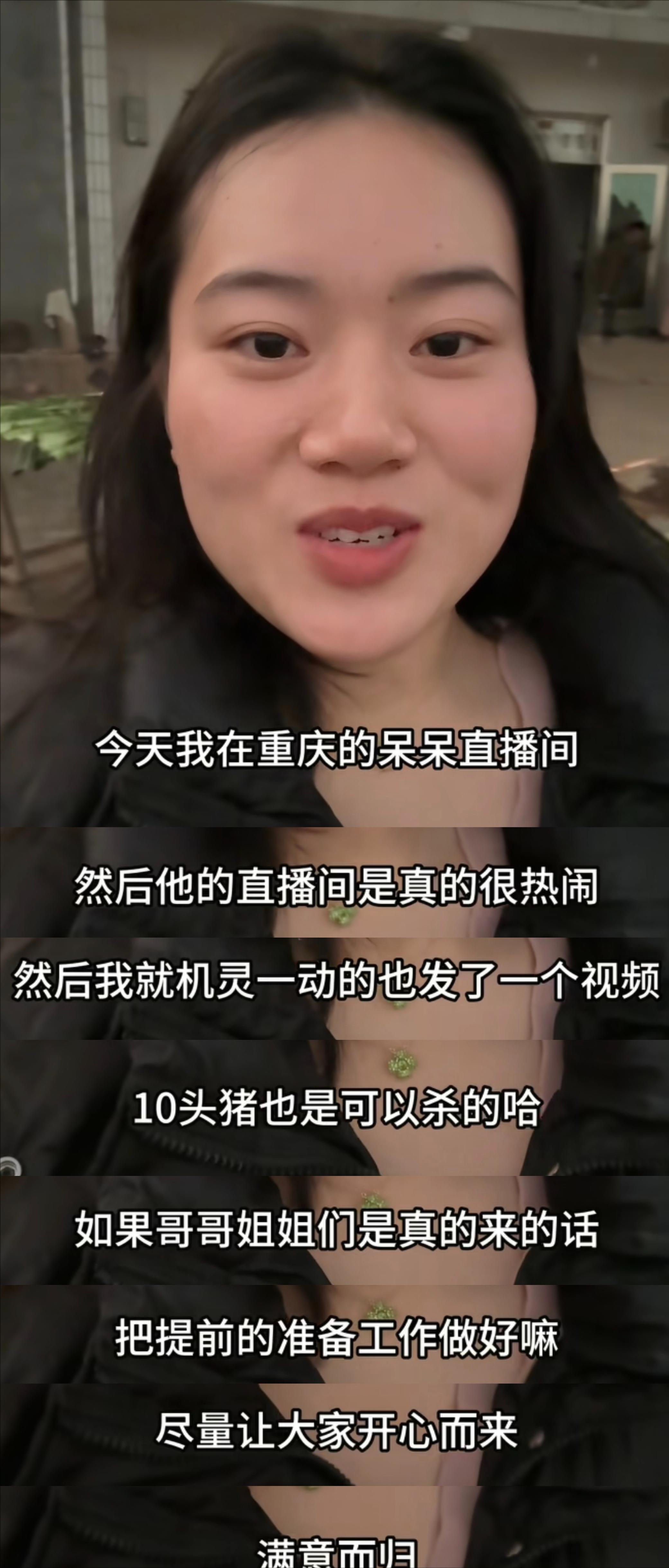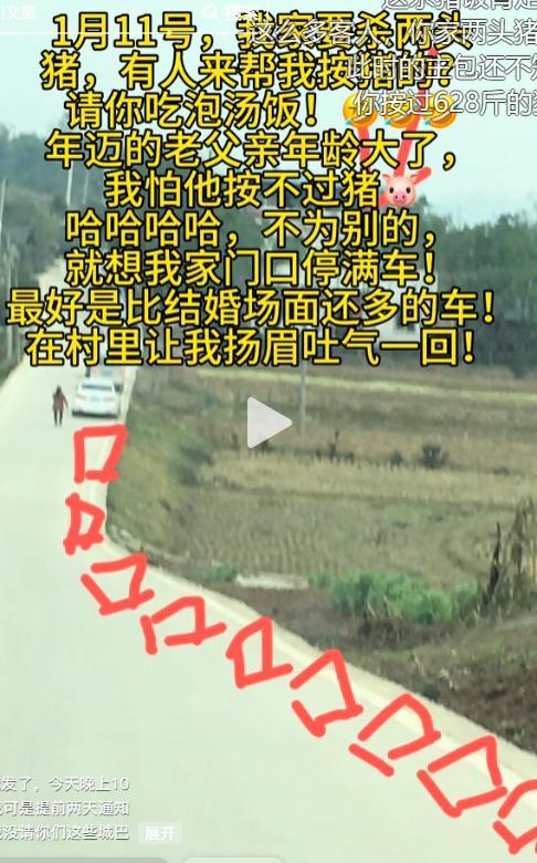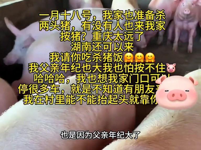 同样是父亲年纪大按不住猪,同样是邀请网友来帮忙吃杀猪饭,甚至同样提到了“跟风”,她直言看到合川的杀猪宴火了,所以也想试试。