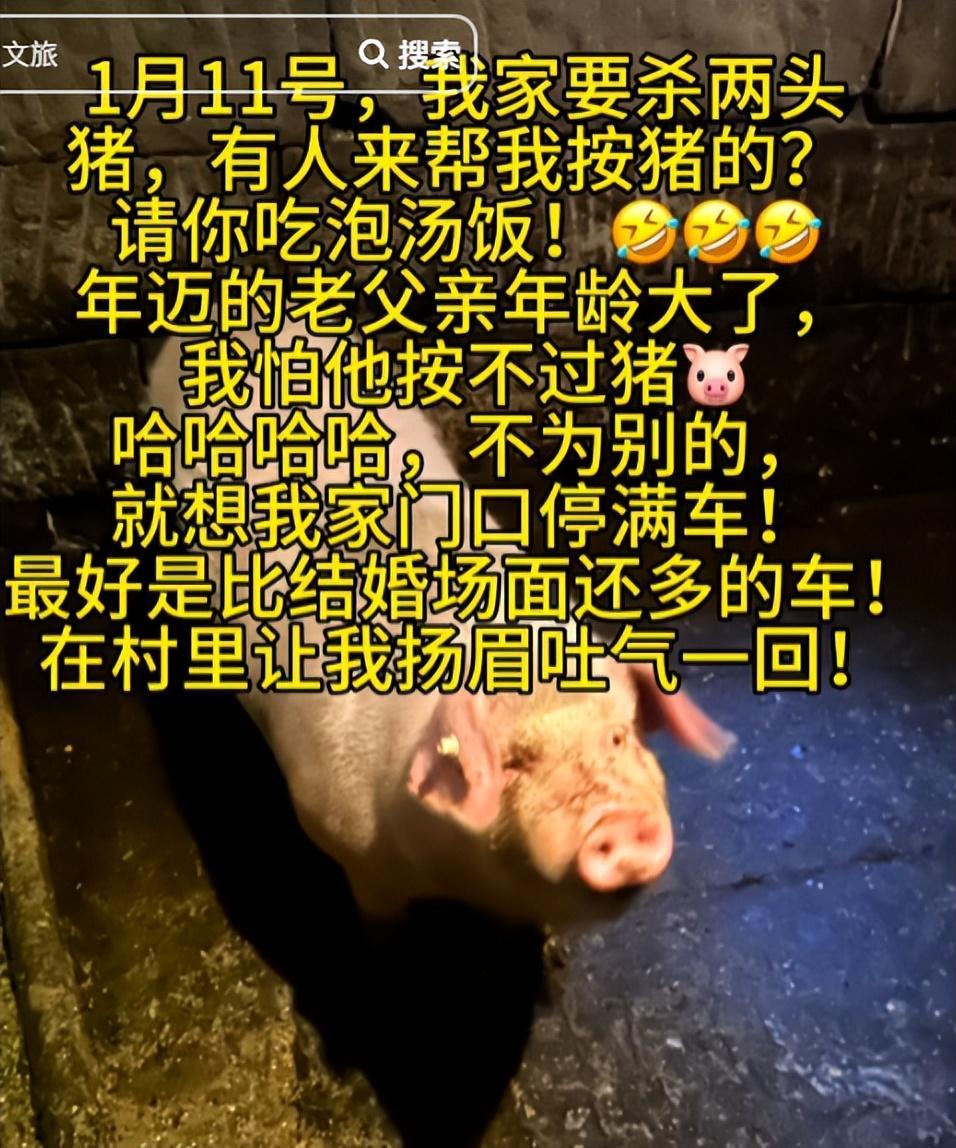 如今再会回头看,呆呆所发布的那条视频更是朴实无华,为了让自己的父亲休息,恳请网友来帮忙杀猪,还承诺“管刨猪汤管饱”。