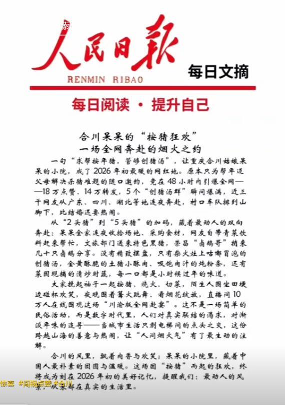 自从重庆合川的“呆呆”邀请全民举办杀猪宴,火爆全网之后,当地文旅直接赢麻了,央视记者直接去到现场报道。